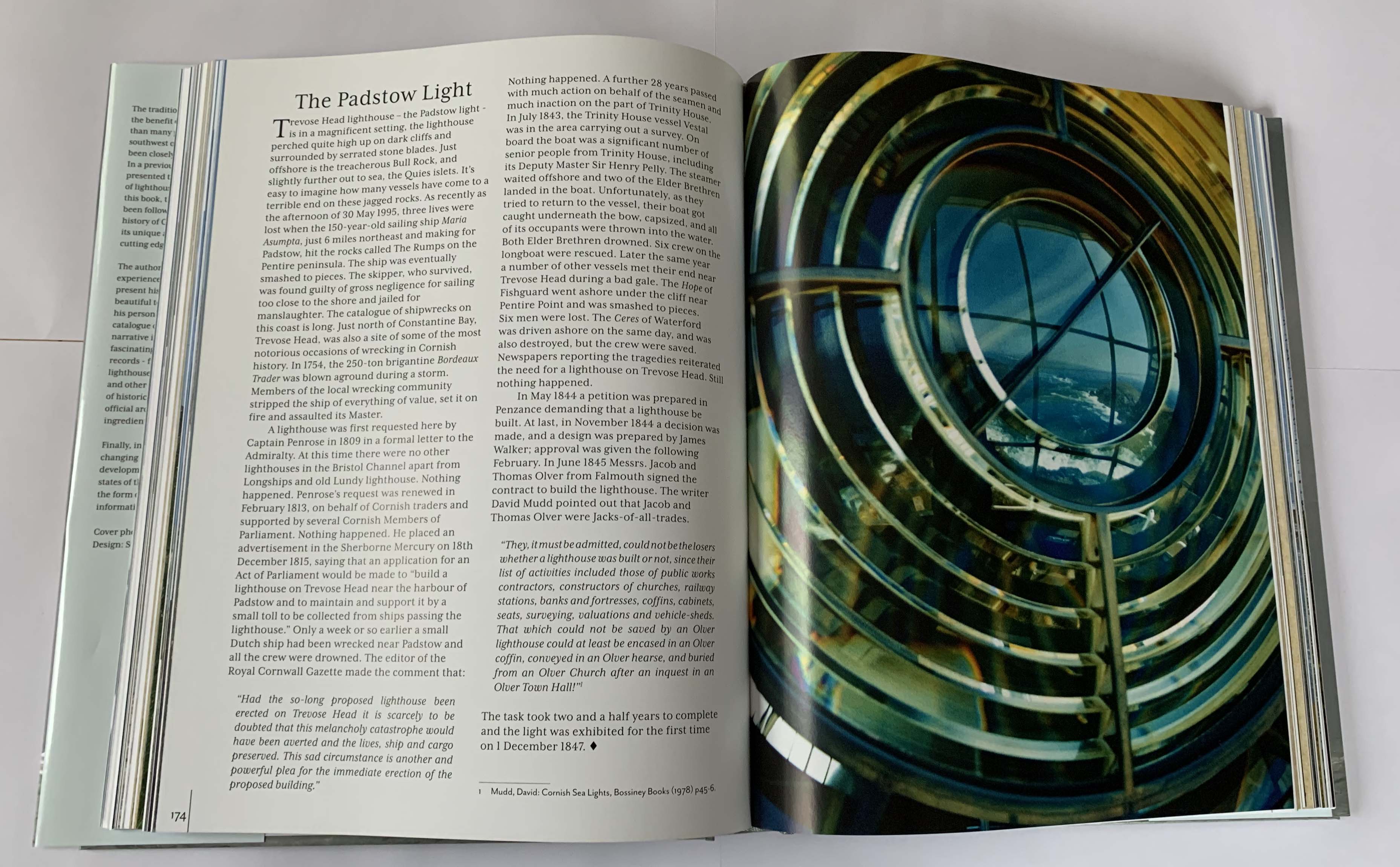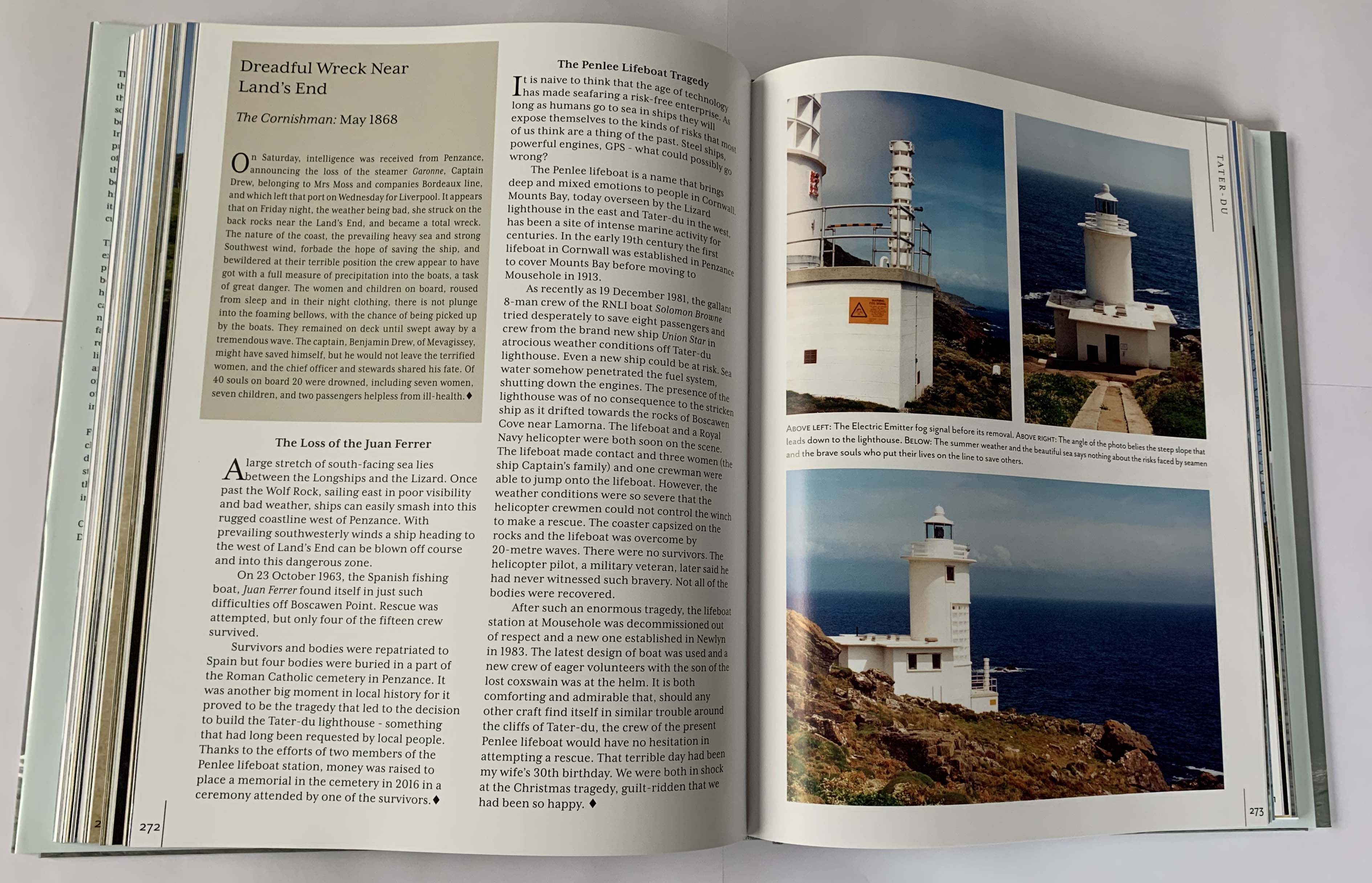 It has a Foreword by the British yachtsman and Internationally renowned helmsman, Pete Goss MBE. Pete, a long-time resident of the Torpoint area of Cornwall, was invested in the Legion d'Honneur for the selfless rescue of the stricken French sailor Raphaël Dinelli in the remote South Atlantic during the 1996 Vendée Globe solo around the world yacht race. Needless to say, he cares deeply about lighthouses.